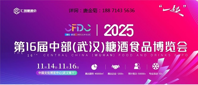 2025 6届中部(武汉)糖酒食品博览会 时间:2025年11月14-16日 地点:中国文化博览中心(武汉客厅) 详询:唐188 7143 5636 主办单位:湖北省食品工业协会、湖北省酒业协会、武汉酒类行业协会、武汉进口葡萄酒行业协会 承办单位:武汉仁创会展服务有限公司、长沙仁创会展服务有限公司 展出面积:45000㎡ 展馆分布:品...