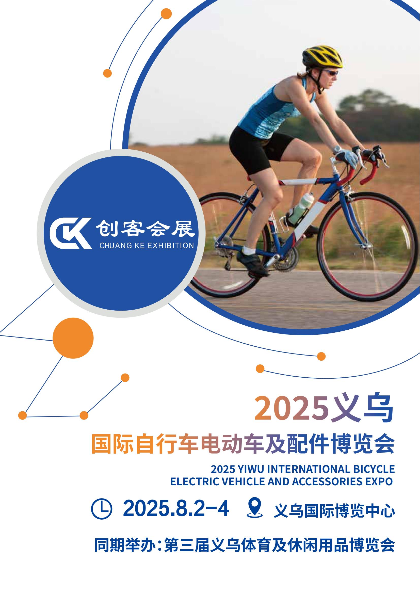 2025义乌国际自行车电动车及配件博览会 2025 YIWU INTERNATIONAL BICYCLE ELECTRIC VEHICLE & ACCESSORIES FAIR 举办时间:2025年8月2-4日 举办地点:义乌国际博览中心 同期举办:第3届义乌国际体育及休闲用品博览会暨义乌国际户外用品展 组织机构:义乌创客会展有限...