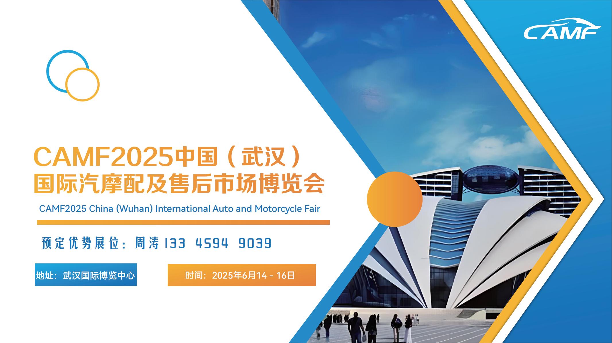 CAMF2025中国(武汉)国际汽摩配及售后市场博览会 CAMF2025 China (Wuhan) International Auto and Motorcycle Fair 地址:武汉国际博览中心 时间:2025年6月14- 16日 展会主题:立足武汉 辐射华中 面向全国 展会背景 随着全球化发展进程的推进,汽摩行业相关配件的贸...