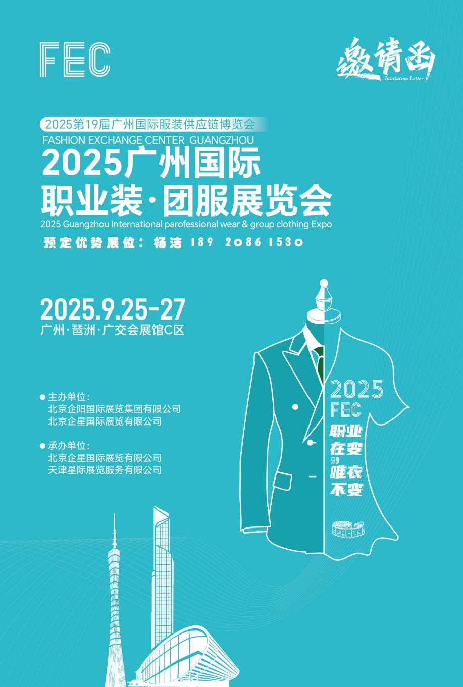 2025广州国际职业装.团服展览会 2025 Guangzhou international parofessional wear & group clothing Expo 2025.9.25-27 广州-琶洲-广交会展馆C区 主办单位: 北京企阳国际展览集团有限公司 北京企星国际展览有限公司 承办单位: 北京企星国际展览...