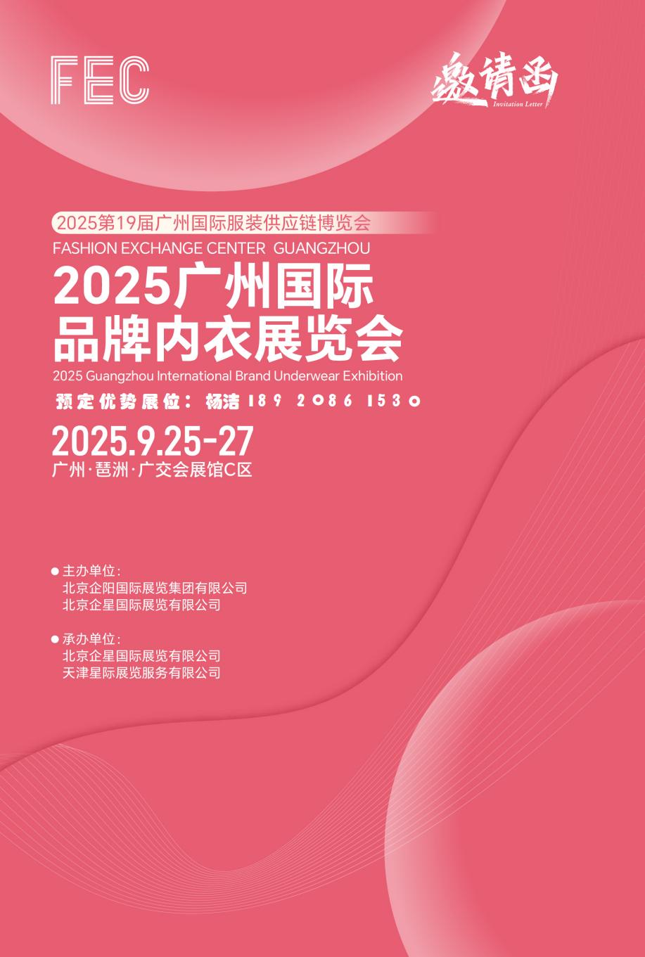 2025广州国际品牌内衣展览会 2025 Guangzhou International Brand Underwear Exhibition 2025.9.25-27 广州-琶洲-广交会展馆C区 主办单位: 北京企阳国际展览集团有限公司 北京企星国际展览有限公司 承办单位: 北京企星国际展览有限公司 天津星际展览服务有限公司 成...