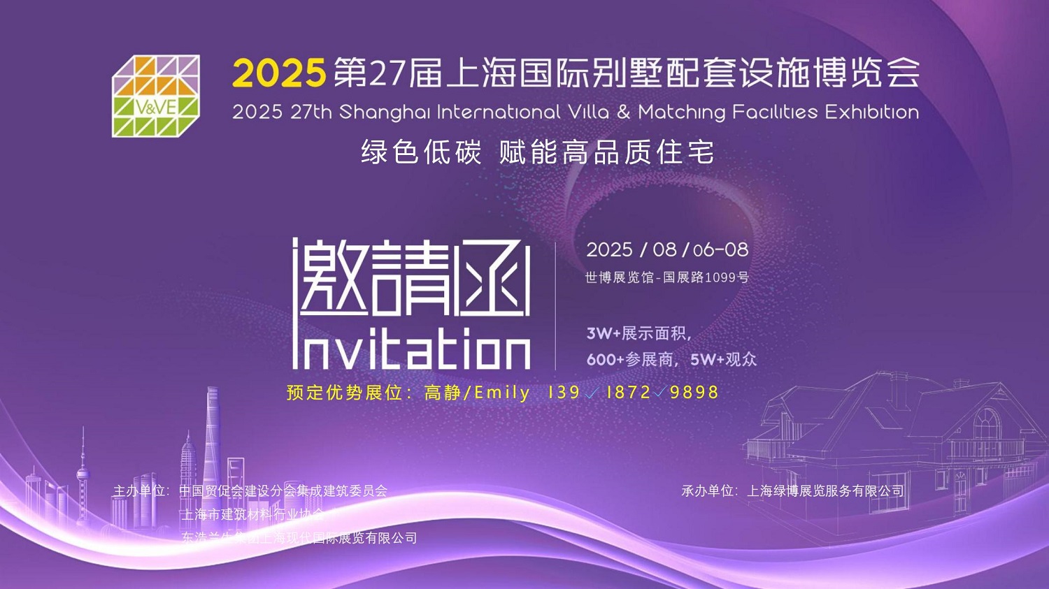 2025第27届上海国际别墅配套设施博览会 202527th Shanghai International Villa & Matching Facilities Exhibition 绿色低碳 赋能高品质住宅 展会概况: 展览时间:2025年8月6-8日 展览地点:世博展览馆(国展路1099号) 展会规模:3W+展示面积,60...