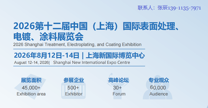 2026第十二届中国(上海)国际表面处理、电镀、涂料展览会 2026 Shanghai Treatment, Electroplating, and Coating Exhibition 2026年8月12日-14日 | 上海新国际博览中心 August 12-14, 2026| Shanghai New International Ex...