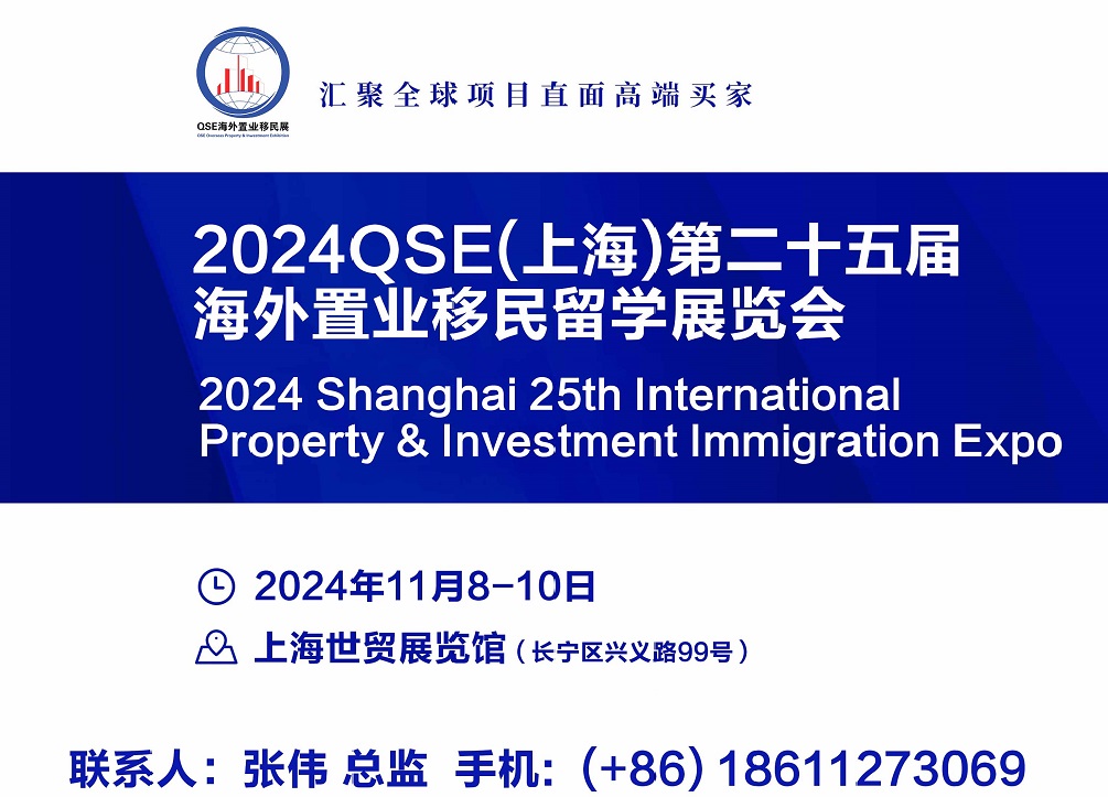 2024QSE上海第二十五届海外置业移民留学展览会a海外房产 | 投资移民 | 出国留学2024年11月8-10日 上海世贸展馆 展会概况上海海外置业及投资移民展,是目前中国针对日益发展的海外置业及投资移民行业的盛会,展会涵盖四大主题:海外置业、海外移民、海外投资、海外留学。为期两天的展会将会有来自欧洲、北美洲、亚洲、澳洲、非洲等 30多...