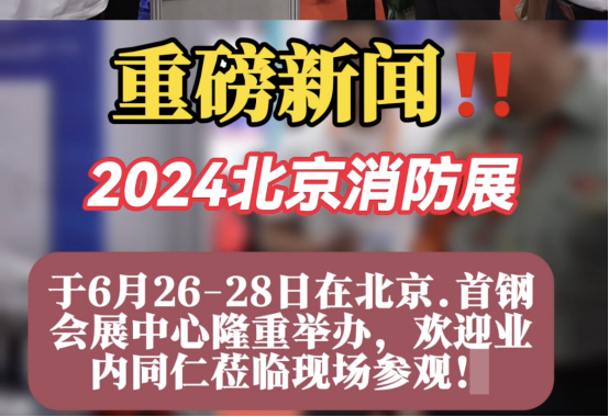 2024北京消防展6.26召开-看消防安全企业如何升级赋能 随着社会的快速发展,消防安全已经成为企业安全生产的重要一环。作为消防领域的品质盛会,2024中国(北京)消防技术与设备展览会将于6月26-28日在北京.首钢会展中心召开,展会的召开为消防安全企业提供了一个展示自身实力、交流技术经验、探索创新发展的 平台。通过本次展会看消防安全企...