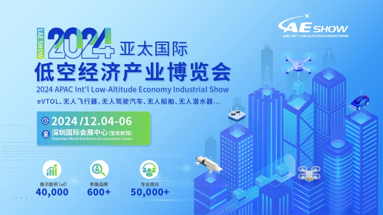 LAE SHOW 2024亚太国际低空经济产业博览会 2024 APAC Int'l Low-Altitude Economy Industrial Show ◎ 展会基本信息: 展览时间:2024年12月4日-6日 展览地点:深圳国际会展中心(宝安新馆) 展览面积:40,000+平方米 展商数量:600+知名品牌 观众数量:50,00...