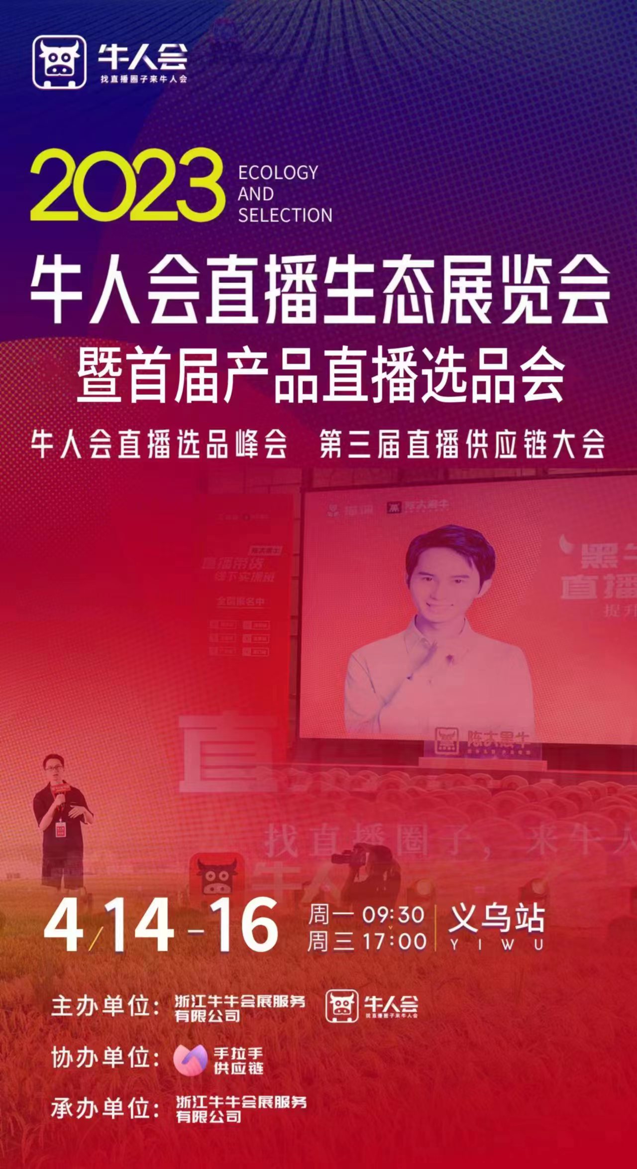 义乌牛人会直播选品会 同期举办:牛人会直播选品峰会 第三届直播供应链大会 时间:2023年4月14-16日 地点:义乌国际博览中心 主办单位:牛人会 浙江牛牛会展服务有限公司 协办单位:浙江手拉手供应链管理有限公司 承办单位:浙江牛牛会展服务有限公司 展会前言: 目前我国直播电商市场处于高增状态,直播带货成为新零售趋势,直播电商逐步常...