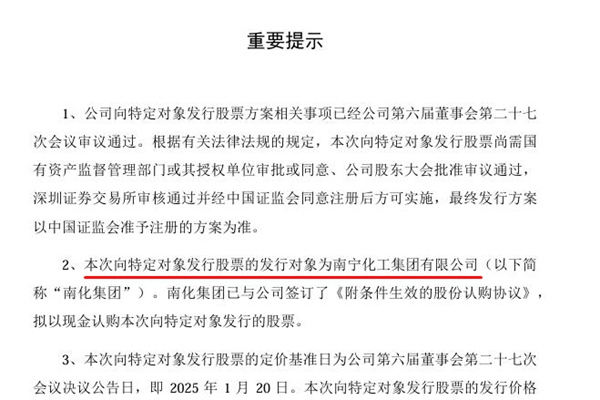 2025年1月21日,与控制权拟变更公告同时发出的还有《关于终止2024年度向特定对象发行股票事项的公告》以及《2025 年度向特定对象发行股票预案》等公告。图源:博世科公告 公告明确,博世科拟向控股股东宁国市国有资本控股集团有限公司发行股票,募资不超过6.50亿元事项终止,给出的原因是“综合考虑外部客观环境、市场环境变...