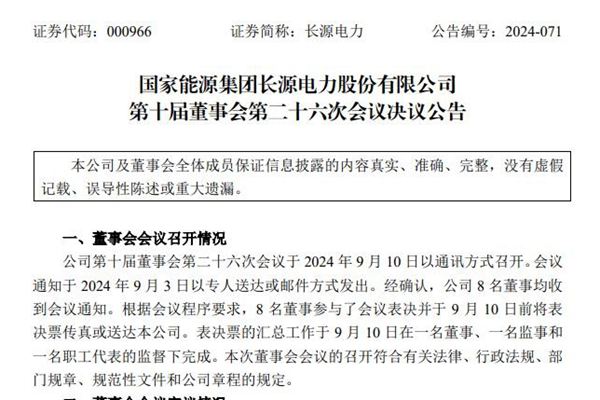 9月11日,总市值超百亿的国家能源集团长源电力股份有限公司(简称:长源电力)发布公告称,公司第十届董事会第二十六次会议审议通过了《聘任公司总经理议案》,经公司董事长提名、公司董事会提名委员会审议通过,决定聘任郑峰先生为公司总经理。 而就在一周前,长源电力刚刚宣布其时任董事兼总经理王强因工作调动辞去现有职务,辞职后不再担任公司及其子公...
