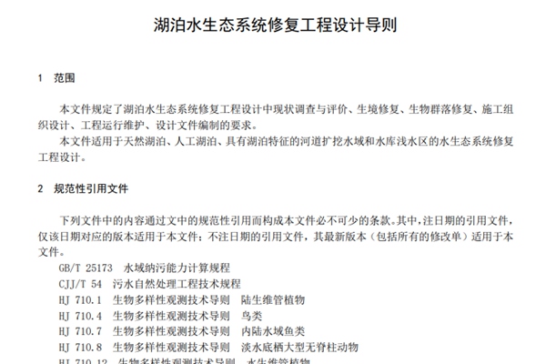 2024年2月初,河南省地方标准《湖泊水生态系统修复工程设计导则》(全文查看附件)正式发布,文件已定于2024年5月1日起施行。该标准由河南省水利厅提出,归口于河南省水利标准化技术委员会。 文件规定了湖泊水生态系统修复工程设计中现状调查与评价、生境修复、生物群落修复、施工组织设计、工程运行维护、设计文件编制的要求。本文件适用于天然湖...