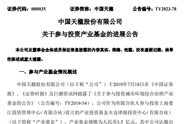 中国天楹股份有限公司将不再持有此前参与投资的太仓津源投资中心(有限合伙)私募基金份额。 2023年12月27日,中国天楹发布《关于参与投资产业基金的进展公告》,公告显示,2019年公司作为有限合伙人参与投资上海娄江投资管理中心(有限合伙)设立的产业投资基金太仓津源投资中心(有限合伙),产业基金规模为人民币3.5 亿元,其中公司认缴出...