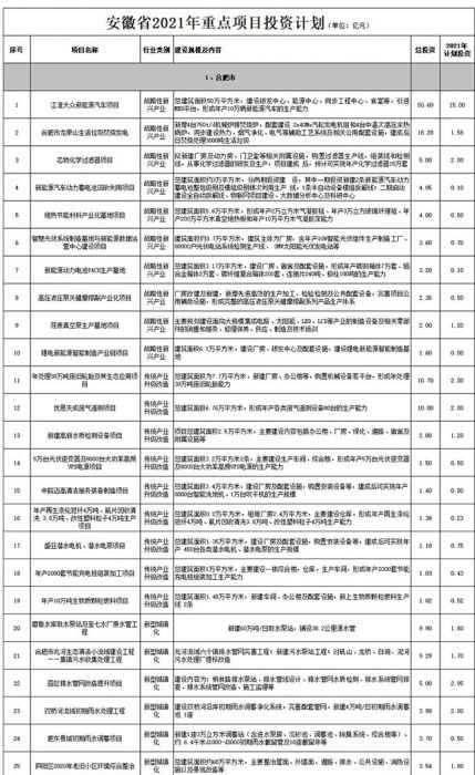 2021年2月26日, 安徽省人民政府发布《2021年重点项目投资计划》,合计7851个。 生态环保类别有276个: 1、十五里河流域治理一期工程项目 2、资源循环利用及生态处置项目 3、肥东十八联...