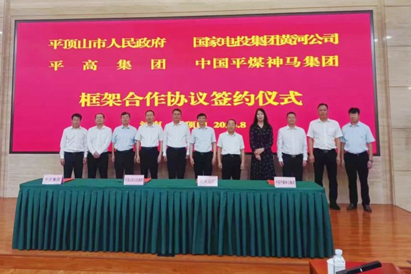 秋高气爽,万物丰收。8月30日,在平顶山市委副书记、市长李明俊,黄河公司党委书记、董事长姚小彦,中国平煤神马集团党委书记、董事长李毛,河南省发改委能源局综合处处长范磊的共同见证下,平顶山市委常委、常务副市长陈天富,黄河公司党委委员、副总经理董鹏,中国平煤神马集团副总经理王安乐,平高集团总经理朱琦琦分别代表各方签订合作框架协议。集团公司...
