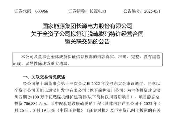 7月16日晚,国家能源集团长源电力股份有限公司(简称:长源电力)发布公告,全资子公司汉川公司拟与汉川龙源环保签订烟气脱硫脱硝特许经营合同,将脱硫脱硝新建工程交由其投资、建设、运行、维护及管理。 根据双方约定的价格结算原则,按照发电设备年利用小时数4,150小时测算,预计汉川公司每年将向汉川龙源环保支付脱硫脱硝电价收益共计约18,21...