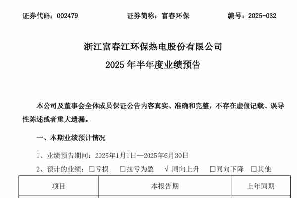 浙江富春江环保热电股份有限公司(简称:富春环保)近日发布《2025年半年度业绩预告》。报告期内,富春环保预计实现归属于上市公司股东的净利润盈利17,762.87万元-20,723.35万元,同比上升80%-110%;扣除非经常性损益后的净利润盈利13,132.82万元—15,321.62万元,同比上升50%-75%;基本每...