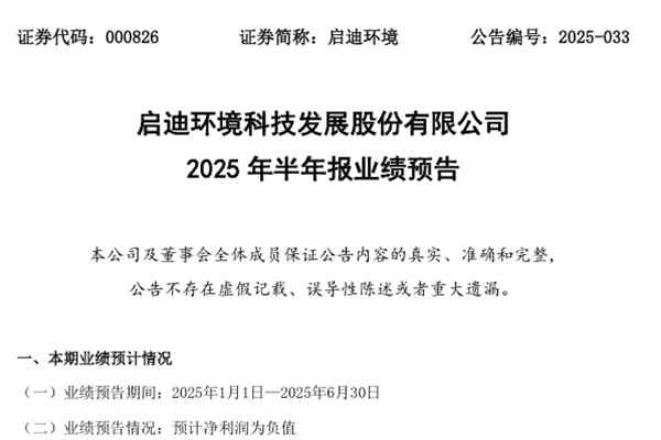 启迪环境科技发展股份有限公司(简称:启迪环境)近日发布《2025年半年报业绩预告》。报告期内,启迪环境预计实现归属于上市公司股东的净利润亏损46,000万元-56,000万元,同比下降110.04%-155.70%,上年同期亏损21,900.98万元;扣除非经常性损益后的净利润亏损18,500万元-28,500万元;营业收入210,0...
