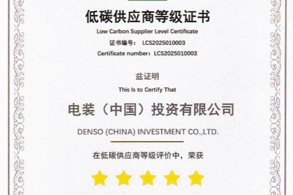 2025年4月23日,电装(中国)投资有限公司(以下简称“电装中国”)荣获由汽车工业节能与绿色发展评价中心颁发的“五星低碳供应商”等级证书。这一认证充分肯定了电装中国在碳管理体系建设、节能降碳实践以及绿色供应链协同方面的积极成效,彰显了电装作为汽车零部件供应商在“双碳&rdq...