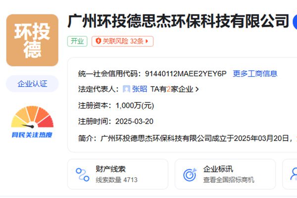 近日,广州环投德思杰环保科技有限公司正式成立,法定代表人为张昭,注册资本1000万元,经营范围为:技术服务、技术开发、技术咨询、技术交流、技术转让、技术推广;生物化工产品技术研发;生物质液体燃料生产工艺研发;电力行业高效节能技术研发;机械设备研发;新材料技术推广服务。 股权穿透显示,该公司由广州环投永兴集团股份有限公司持股51%、浙...