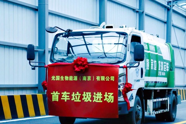 近日,由江苏省环保集团所属省环境资源有限公司作为股东方之一的光国生物能源(南京)有限公司首车垃圾顺利进场。身披红绸彩球的餐厨垃圾清运车完成地磅秤重、经过引桥后,在工作人员指挥下驶入卸料平台,开始“变废为宝”的处理过程。 光国生物能源(南京)有限公司占地97.8亩,日处理餐厨垃圾600吨/日、废弃油脂60吨/日...