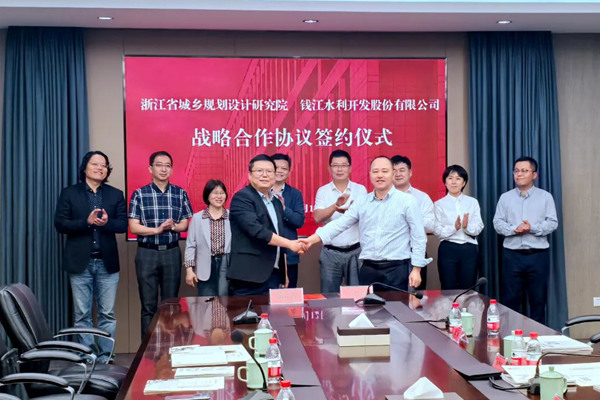 2024年10月12日,钱江水利开发股份有限公司与浙江省城乡规划设计研究院举行战略合作签约仪式,并就深化战略合作开展交流。钱江水利党委书记、总经理王天强,省城乡规划设计研究院党委副书记、院长沙洋,钱江水利副总经理潜卫,省城乡规划设计研究院副院长庞海峰,首席总工程师赵萍出席签约仪式。 潜卫、庞海峰分别代表双方签订战略合作协议,双方将基...