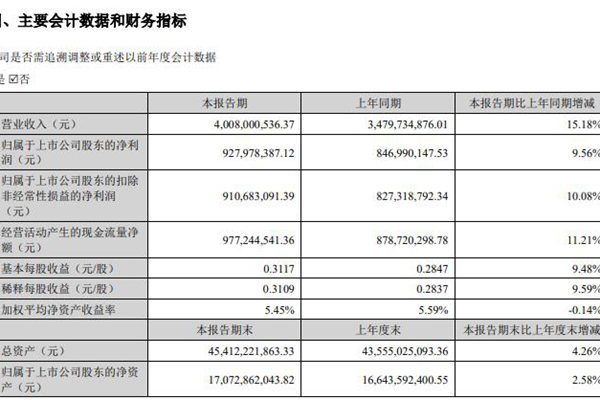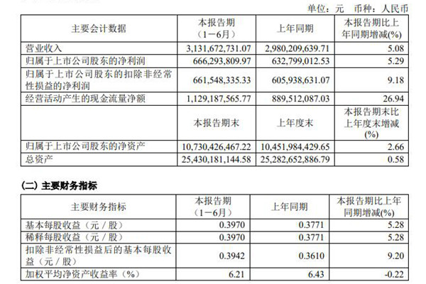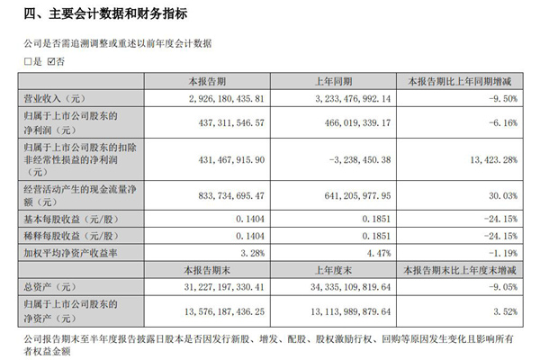 8月27日,重庆三峰环境集团股份有限公司发布《2024 年半年度报告》。图源:三峰环境公告 1-6月,三峰环境实现营业收入31.32亿元,同比增长5.08%;归母净利润6.66亿元,同比增长5.29%;扣非后净利润6.62亿元,增幅9.18%,每股收益0.3970元。报告期内,三峰环境经营活动产生的现金流量净额11.29亿元,同比增...