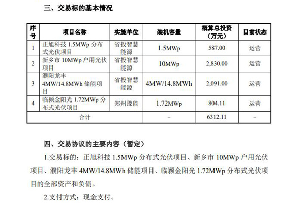 2024年8月23日,河南豫能控股股份有限公司发布《关于关联交易处于筹划阶段的提示性公告》。 为强化核心业务,优化资产结构,妥善解决河南豫能控股股份有限公司与控股股东河南投资集团有限公司之间的同业竞争问题,豫能控股拟启动收购河南投资集团间接控股子公司河南省投智慧能源有限公司投资建设的正旭科技 1.5MWp分布式光伏项目、新乡市 10...