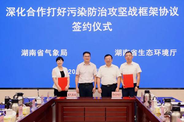 为协同打好污染防治攻坚战,切实提升生态环境质量,推进美丽湖南建设,7月17日,湖南省生态环境厅与省气象局签署深化合作打好污染防治攻坚战框架协议。省生态环境厅党组书记、厅长刘群与省气象局党组书记、局长郑宏翔出席并见证签约。 刘群代表省生态环境厅向省气象局长期以来对全省生态环境保护事业发展的关心和支持表示感谢。他说,党的十八大以来,以习...