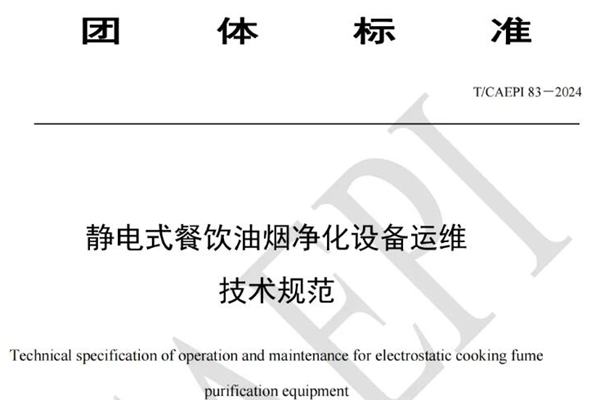 为推动油烟净化设备运维服务专业化、规范化,尤其是针对静电式餐饮油烟净化设备的运维服务规范化,近日,由中国环境保护产业协会组织编制的《静电式餐饮油烟净化设备运维技术规范》(T/CAEPI 83-2024)正式发布。本标准自2024年4月3日开始实施。 本文件规定了静电式餐饮油烟净化设备运维的总体要求、现场运维、集中清洗维保、运维单位管...