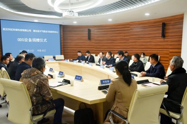 2024年3月26日,武汉天虹环保科技有限责任公司(以下简称“武汉天虹”)向中国地质大学(武汉) (以下简称 “地大”)湖北省大气污染复合研究中心,捐赠1套消耗臭氧层物质和含氟温室气体在线监测设备(ODS/HFCs)。湖北省生态环境监测中心站副站长刘少辉,地大校党委副书记王林清,武汉天虹...