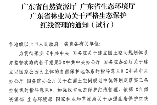 为加强广东省生态保护红线管理,近期,广东省3部门联合印发《关于严格生态保护红线管理的通知(试行)》,并明确该通知自印发30日后启动施行(2023年12月28日),有效期3年。 通知要求,要规范管控允许有限人为活动、严格审批国家重大项目占用、从严把关生态保护红线调整、强化生态保护红线监管。 ...
