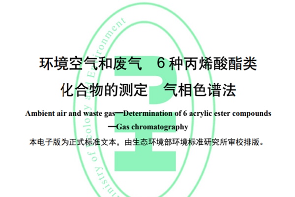 《环境空气和废气 6种丙烯酸酯类化合物的测定 气相色谱法(HJ 1317—2023)》近日由生态环境部首次发布,并定于2024年6月1日起施行。 本标准规定了测定环境空气、无组织排放监控点空气和固定污染源有组织排放废气中丙烯酸甲酯、丙烯酸乙酯、甲基丙烯酸甲酯、丙烯酸丙酯、丙烯酸丁酯和甲基丙烯酸丁酯等6 种丙烯酸酯类化合物...
