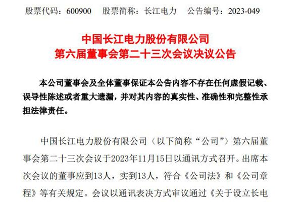 11月16日,长江电力发布公告,表示将设立长电(休宁)能源发展有限公司(暂定名),作为安徽休宁抽水蓄能电站项目的投资、建设及运营主体,其中长江电力、中国三峡建工(集团)有限公司分别持股51%、19%,其他国资股东持股30%。注册资本金为人民币16.30亿元。 申明:本站发布此信息的目的在于传播更多信息,与本站立场无关。并且郑重提示所...