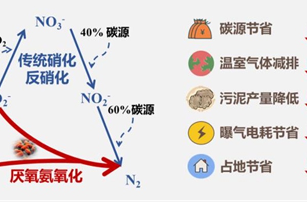 01.技术名称 高氨氮废水厌氧氨氧化高效低碳脱氮技术 02.适用范围 污泥消化液、垃圾渗滤液、养殖废水、餐厨发酵液、半导体废水、煤化工废水、制药废水、食品废水等行业高氨氮废水的处理。 03.技术内容 技术原理 厌氧氨氧化过程见反应式(1),厌氧氨氧化实现高效脱氮的机理如图 1 所示。图 1 厌氧氨氧化原理与优势 针对低C...