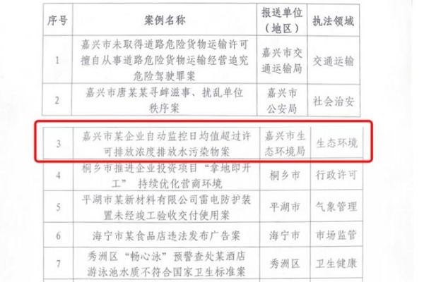 近日,浙江省生态环境厅公布2023年度生态环境行政执法优秀案卷,嘉兴市办理的全省首个直接以排污单位自动监控日均值为依据查处的超过许可排放浓度排放水污染物案件名列其中。同时,该案件被嘉兴市委全面依法治市委员会办公室评为全市行政执法十大典型案例。 近年来,嘉兴市生态环境局高度重视非现场执法手段应用,有序推进污染源自动监控设施安装联网工作...