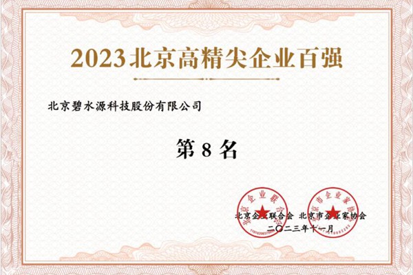 近日,由中国企业联合会、中国企业家协会指导,北京、天津、河北三地企业联合会与企业家协会联合主办的2023年京津冀产业链供应链大会 京津冀百强企业、北京百强企业论坛在北京举办。会上发布了2023京津冀企业百强榜单和北京企业百强榜单,碧水源及其子公司上榜6个“百强榜单”。 碧水源在“2023北京高精尖...