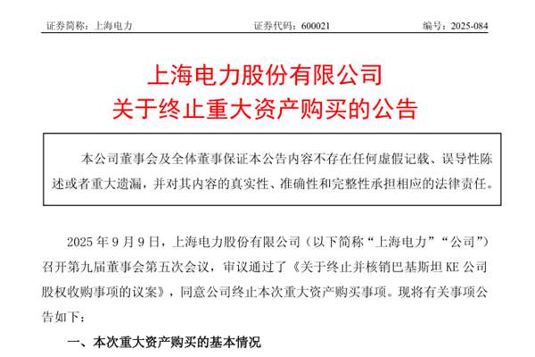 上海电力股份有限公司(简称:上海电力)近日公告称,公司决定终止收购 KESPOWER LTD.(下称“KES能源公司”)持有的 K-ELECTRIC LIMITED(下称“KE 公司”)18,335,542,678 股事项,占KE公司总发行股本的66.40%。原计划可支付对价为17.70...