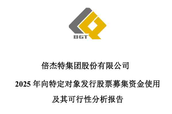 倍杰特集团股份有限公司(简称:倍杰特)近日公告称,公司拟向特定对象发行募集资金总额为不超过人民币100,000.00万元,扣除发行费用后的募集资金净额将用于喀什地区喀什市城北供水保障能力提升工程及污水处理厂建设项目、山西中煤平朔能源化工有限公司全厂水处理系统优化及浓盐水零排放项目EPC总承包项目以及补充流动资金。图源:倍杰特公告 倍...