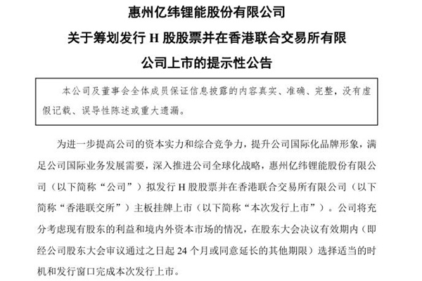 2025年06月10日,惠州亿纬锂能股份有限公司发布《第六届董事会第五十三次会议决议公告》。图源:东方财富 第六届董事会第五十三次会议审议通过了《关于公司发行H股股票并在香港联合交易所有限公司上市的议案》。 为进一步提高公司的资本实力和综合竞争力,提升公司国际化品牌形象,满足公司国际业务发展需要,深入推进公司全球化战略,公司拟发行...