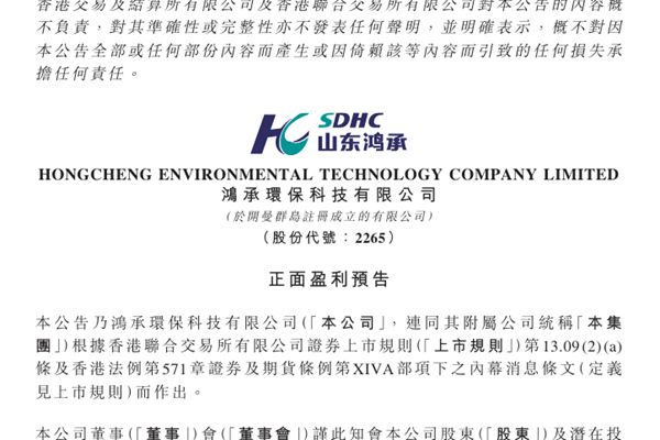 3月19日,鸿承环保科技发布公告,公司预计截至2024年12月31日止年度将录得约6000万元的本公司拥有者应占年内溢利,较截至2023年12月31日止年度的约1750万元增加约242.9%。同时,预计收益将达到约2.34亿元,相比去年同期的约1.08亿元增长约116.6%。 公告指出,溢利和收益的增加主要归因于硫精矿的销量及单价上...