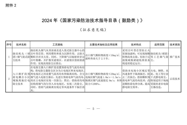 关于征求2024年《国家污染防治技术指导目录(鼓励类)》(征求意见稿)意见的函 为充分发挥先进技术在大气污染防治、噪声与振动控制和减污降碳协同增效中的重要作用,我部组织编制了2024年《国家污染防治技术指导目录(鼓励类)》(征求意见稿),现公开征求意见。征求意见稿可登录生态环境部网站http://www.mee.gov.cn/&ldqu...