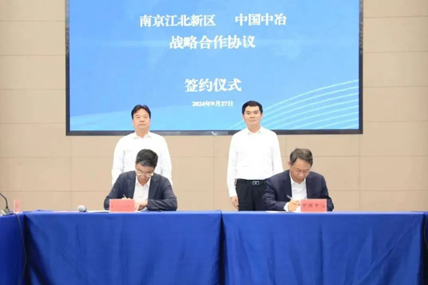 2024年9月27日,中国中冶与南京江北新区签署战略合作协议。中冶集团暨中国中冶党委常委、中国中冶副总裁朱广侠,南京市委常委、江北新区党工委书记陆卫东共同见证并举行会商。江北新区党工委委员、管委会副主任何金雪,中冶集团暨中国中冶总经理(总裁)助理范万柱代表双方签约。 朱广侠在会商中表示,中国中冶已成功构建“一核心两主体五...