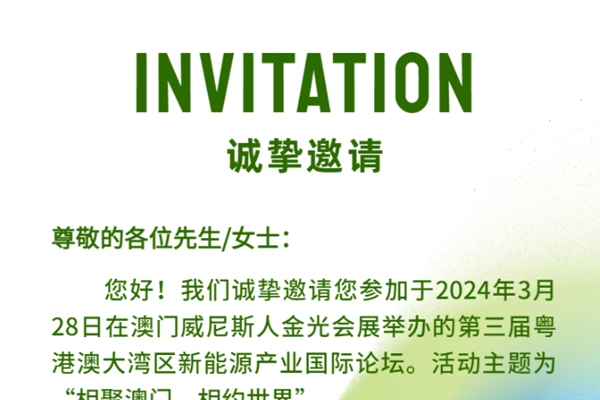 由澳门特别行政区政府主办、泛珠9+1省/区政府协办、澳门贸易投资促进局及环境保护局作为官方承办单位的“2024年澳门国际环保合作发展论坛及展览”(2024MIECF),将于2024年3月28日至30日(周四至周六)在澳门威尼斯人金光会展举行。 01大会介绍 主题:推动绿色转型 力践双碳目标 2024MIE...