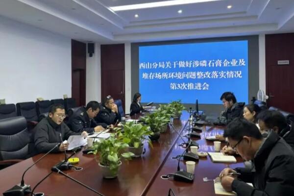 近日,昆明市生态环境局西山分局组织辖区内的4家磷化工企业,云南磷化集团海口磷业有限公司、云南三环中化化肥有限公司、云南胜威化工有限公司、昆明云盘山农牧科技有限公司召开涉磷石膏企业及堆存场所环境问题整改情况第三次推进会议,加快推进涉磷石膏企业环境问题整改。 会上,西山分局通报了2023年区级排查及省级现场调研帮扶发现问题清单,确保清单...