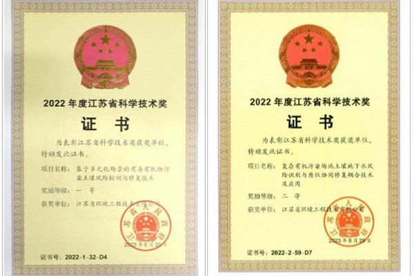 近日,江苏省环保集团所属省环境工程技术有限公司获颁2项江苏省科学技术奖荣誉证书。研究成果“基于多元化场景的有毒有机物污染土壤风险控制与修复技术”荣获江苏省科学技术奖一等奖,是本年度唯一获得该级别奖励的省属企业;研究成果“复杂有机污染场地土壤地下水风险识别与原位协同修复耦合技术及应用”荣获...