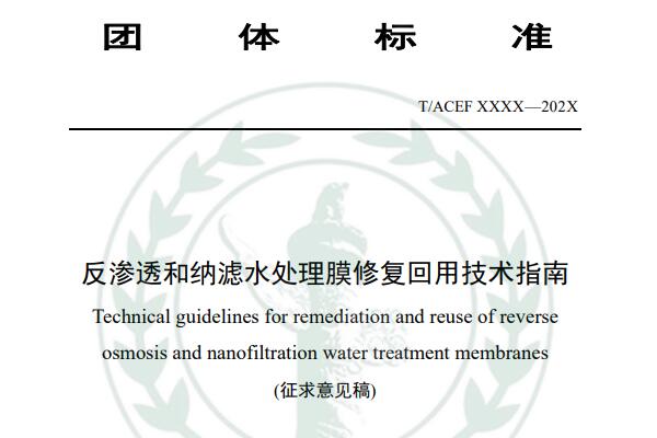 中华环保联合会近日发布《反渗透和纳滤水处理膜修复回用技术指南》,公开征求意见,截止日期为2023年10月14日。...