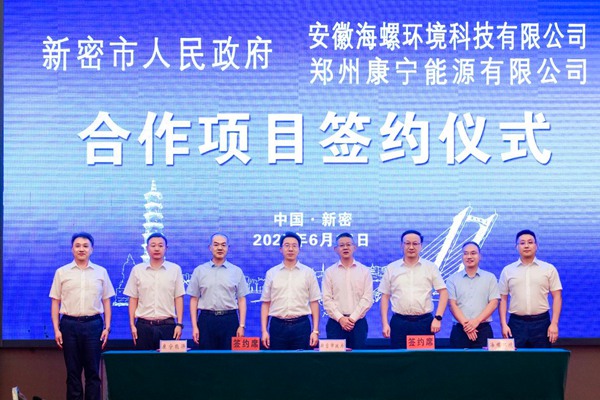 2025 年 6 月 17 日,郑州康宁能源有限公司与安徽海螺环境科技有限公司股权转让协议签约仪式在鲁班喜悦酒店三楼多功能厅隆重举行。新密市市委书记程洋,市委副书记、市长杜鹏懿及市局正职领导,海螺新材党委书记、董事长李晓波,康宁能源董事长张福顺齐聚一堂,共同见证这一重要时刻。 签约仪式上,康宁能源董事张帆、海螺新材副总经理王从富代表...
