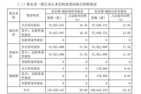 2025年06月10日,聚光科技(杭州)股份有限公司发布《关于控股股东权益变动的提示性公告》。图源:聚光科技公告 2023年2月17日至2025年6月5日,通过证券交易所的证券交易,信息披露义务人及其一致行动人所持公司股份比例合计由28.00%减少到24.43%。 本次权益变动不会导致公司控股股东及实际控制人发生变化。 申明:本...