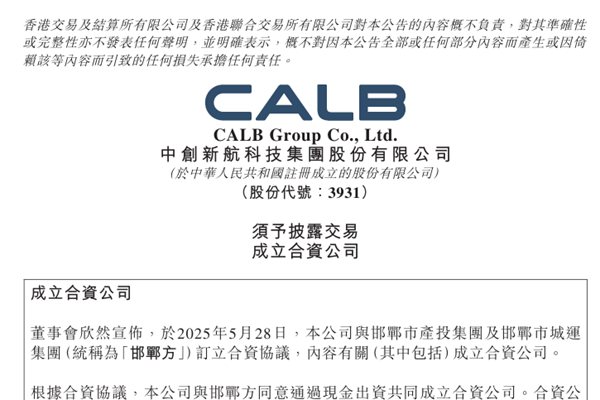 5月28日,中创新航科技集团股份有限公司(简称:中创新航)宣布与邯郸市产投集团、邯郸市城运集团共同注资40亿元成立合资公司,其中,中创新航出资24亿元持股60%,邯郸国资联合体注资16亿元持股40%。 该合资公司将聚焦动力及储能电池系统集成,成为中创新航继5月11日与邯郸市政府签署零碳城市协议后的又一战略落子。 据悉,5月11日,...