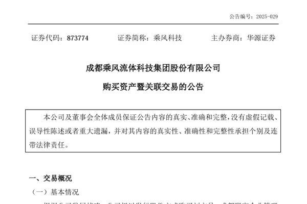 4月10日,成都乘风流体科技集团股份有限公司(简称:乘风科技)发布公告称,根据公司发展战略,公司拟以发行股份方式购买成都成高阀门股份有限公司(下称“成高阀门”)7.75%股权,由刘方员、成都熙高企业管理合伙企业和四川区域协同发展投资引导基金合伙企业持有。 本次发行完成后,乘风科技将进一步提升持有控股子公司成高...