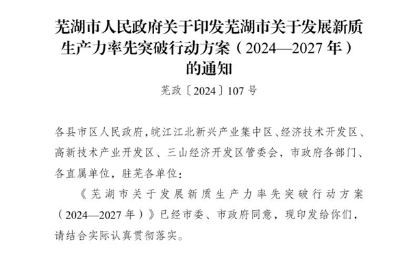 《芜湖市关于发展新质生产力率先突破行动方案(2024—2027年)》发布,要求到2027年,全市新质生产力发展生态不断完善,具有重要影响力的关键技术、创新场景、科技企业、科创园区不断涌现,战略性新兴产业加快融合集群发展,一批具有竞争优势的未来产业初具规模,“芜湖制造”“芜湖服务&rdqu...